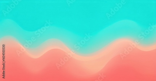 Fototapeta premium Abstract wavy gradient. Turquoise blends into coral. Smooth transitions create fluid visual effect. Minimalist design.