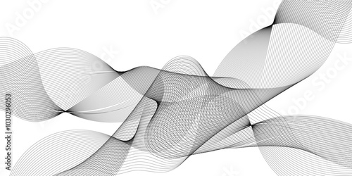 © Ahmad Araf, Fototapeta premium Abstract wavy grey stream element for design on transparent background isolated. Wavy white and grey lines background. Abstract business wave curve lines background. Vector illustration.
