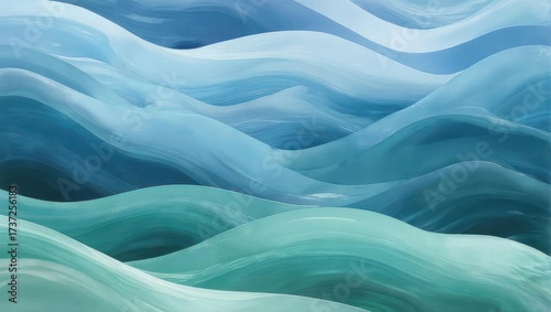Obraz premium Abstract wavy landscape of cool blues and greens