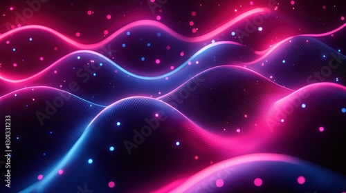 Fototapeta premium Abstract Wavy Landscape with Glowing Pink and Blue Neon Lights