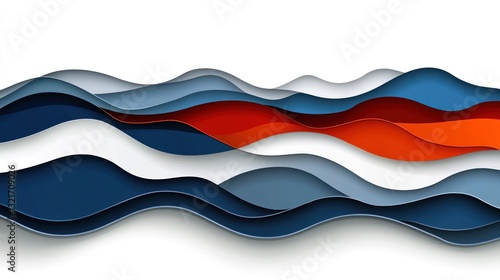 Fototapeta premium Abstract wavy layered paper cut design in blue, orange, and white.