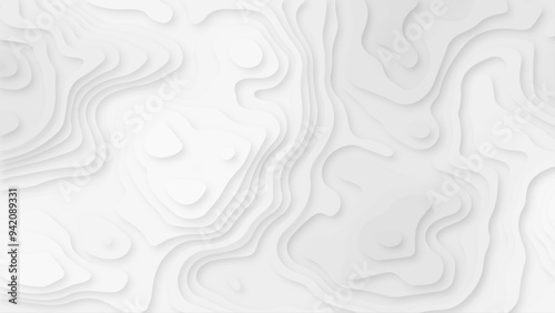 © Noor, Fototapeta premium Abstract wavy line 3d paper cut white background, Seamless pattern with lines Topographic map.