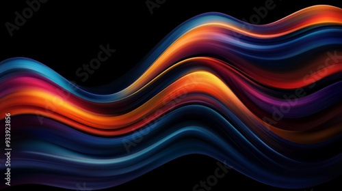 Fototapeta premium Abstract Wavy Lines in Blue, Orange, and Purple on Black Background,...