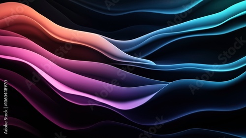 Obraz premium Abstract wavy lines in gradient colors ranging from pink to blue on a dark...
