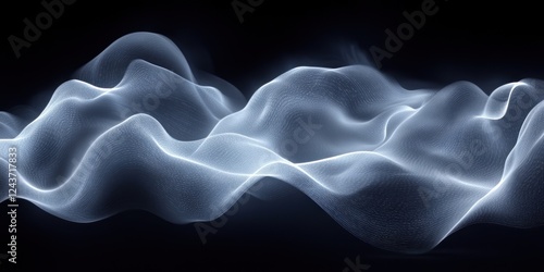 © btiger, Obraz premium Abstract Wavy Lines Minimalist Design Smooth Flowing Light Pattern on Black Background for Technology Digital Communication Music Art Concept