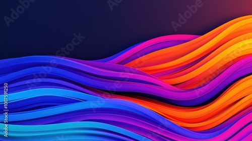 © Narongsag, Naklejka premium Abstract Wavy Lines Neon Blue Orange Pink Gradient Background