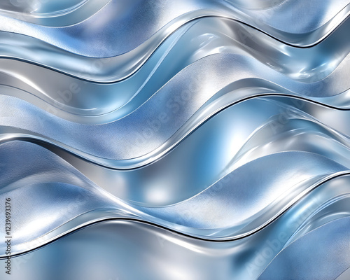 Fototapeta premium Abstract Wavy Metallic Texture: Blue and Silver
