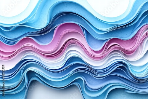 Obraz premium Abstract Wavy Paper Background in Pastel Blues and Pink