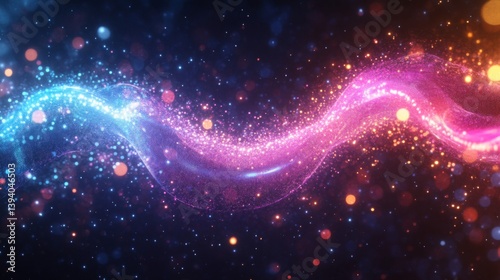 Fototapeta premium Abstract Wavy Pattern with Glittering Light Effects and Blue Purple and Gold Sparkles Against a Dark Background