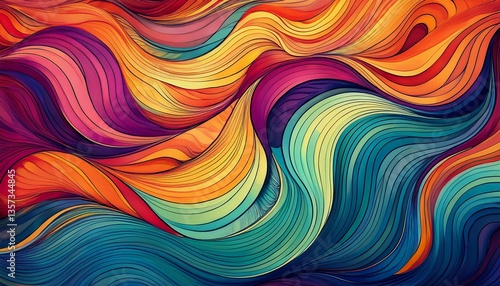 © Jeri, Obraz premium abstract wavy pattern with vibrant colors