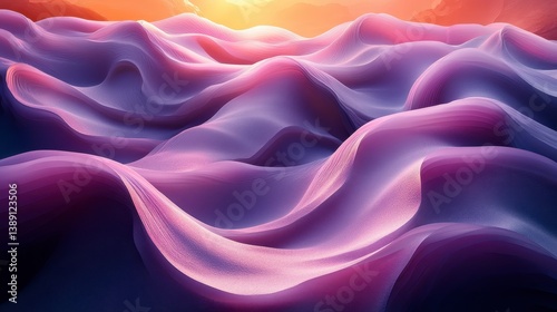 © Ramlan, Fototapeta premium Abstract wavy purple dunes, orange sky