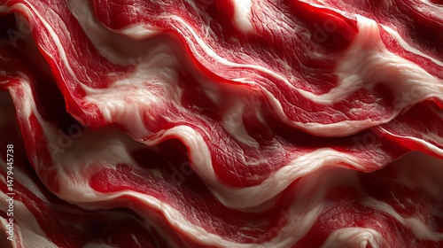 © NCSF, Obraz premium Abstract Wavy Red and White Pattern, Close-up of wavy red and white abstract pattern resembling bacon strips