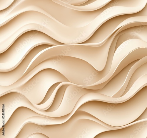 © Vergiliy, Obraz premium Abstract wavy texture in soft beige tones, showcasing flowing lines and smooth curves, ideal for backgrounds and design elements, copy space for text