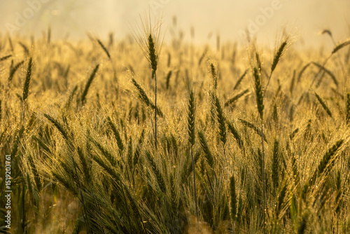 © ANAMUL HAQUE, Obraz premium Abstract Wheat Crops summer or spring background and Selective Focus. Wheat crops Background in Golden hour