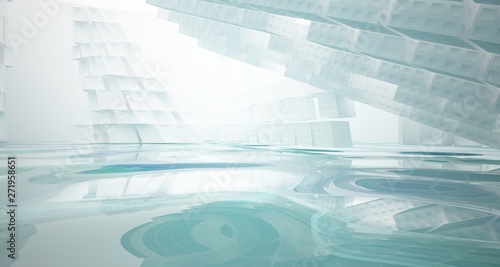 Obraz premium Abstract white and blue water parametric interior with window. 3D...