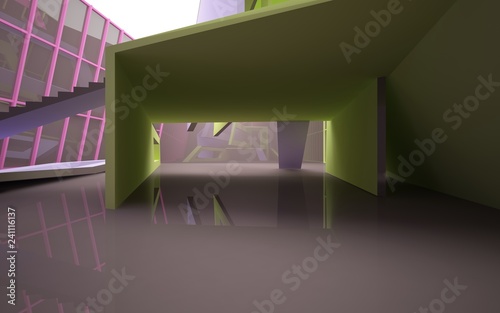 Fototapeta premium Abstract white and colored gradient parametric interiorwith window. 3D...