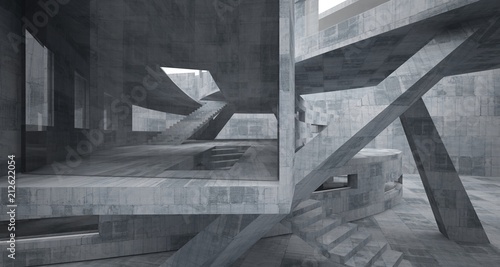 Fototapeta premium Abstract white and concrete parametric interior with window. 3D illustration...