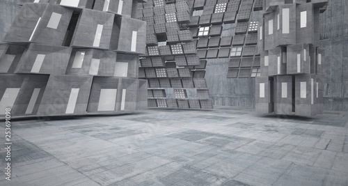 Fototapeta premium Abstract white and concrete parametric interior with window. 3D illustration and rendering.