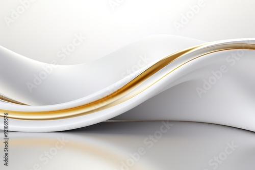© jerseykamu, Obraz premium Abstract white and gold 3D wave background.
