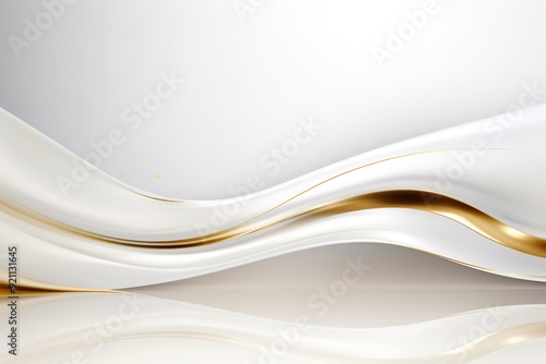 © jerseykamu, Obraz premium Abstract white and gold wave background.