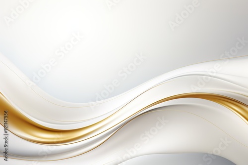 © jerseykamu, Obraz premium Abstract white and gold waves background.