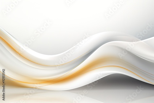 © jerseykamu, Obraz premium Abstract white and gold waves with reflection.