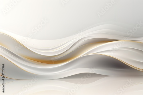 © jerseykamu, Obraz premium Abstract white and gold wavy background with reflection.
