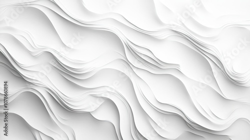 © Lilly, Fototapeta premium Abstract white and gray background with a 3D wavy design.