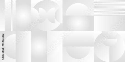 Obraz premium Abstract white and gray gradient background. Modern minimalistic design. Vector illustration with simple shapes like circle, square, rectangle. Monochrome light 3d futuristic design