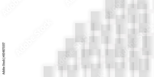 Fototapeta premium Abstract white and grey geometric overlapping square pattern background with...