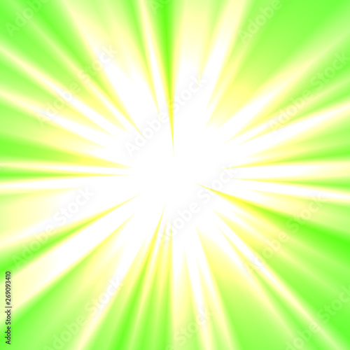 © PaulSat, Obraz premium Abstract white and yellow light rays with green background illustration. Power, energy concept