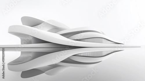 Obraz premium Abstract white architectural model reflected in water.