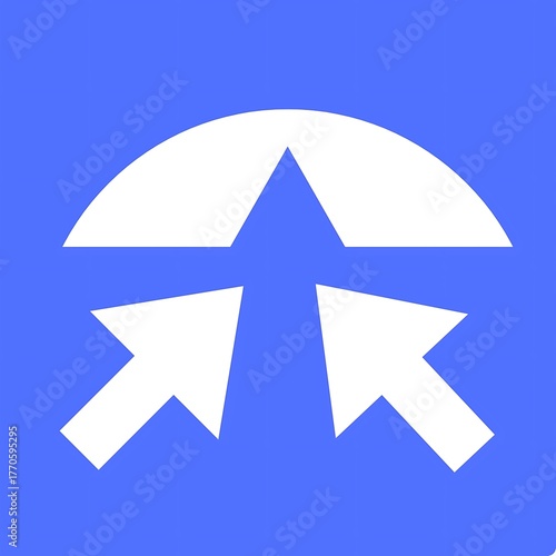 © SOJIB KHAN, Obraz premium Abstract white arrows converging towards a stylized mountain peak on blue background