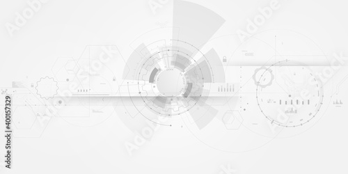 © HNKz, Obraz premium Abstract white background poster with dynamic wave Network technology vector illustration