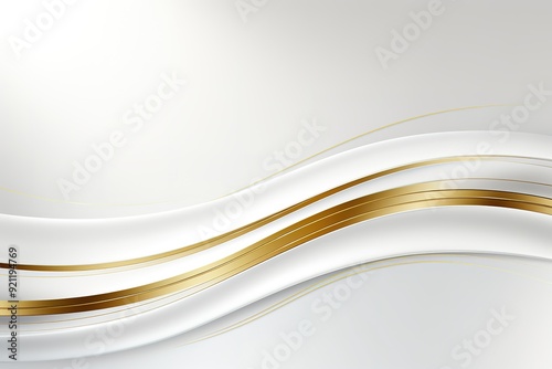 © jerseykamu, Obraz premium Abstract white background with elegant golden curved lines.