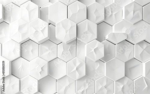 Fototapeta premium Abstract white background with hexagon patterns, simple geometric shapes for...