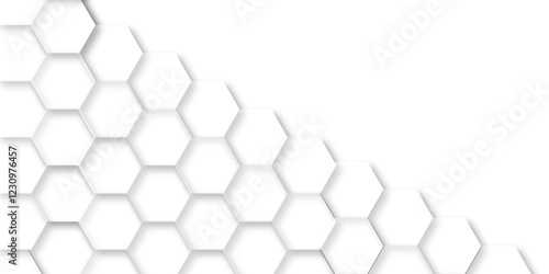 Naklejka premium Abstract white background with hexagons . white Hexagonal Background Luxury White Pattern seamless bright white abstract honeycomb background 3D Futuristic abstract geometric mesh cell texture.