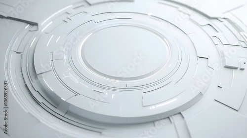 Obraz premium Abstract white circular tech interface with intricate patterns and light...