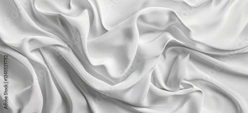 © Eyepain, Obraz premium Abstract white cloth fabric fold and flow ripple wavy texture horizontal illustration minimalist.
