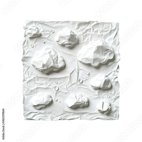 © Hunh, Naklejka premium Abstract White Cloudscape Relief Sculpture on Crumpled Texture