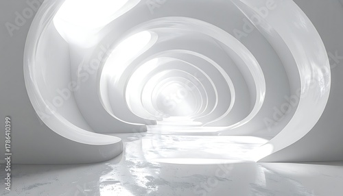 Obraz premium Abstract, white corridor; oval arches shape a tunnel illuminated by sunlight