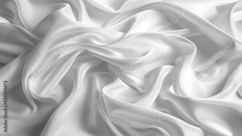 © 69, Obraz premium Abstract white fabric folds creating soft curves and shadows.