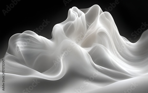 Fototapeta premium Abstract white flowing fabric forming a landscape.