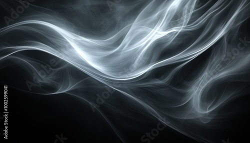 © Riz, Obraz premium Abstract White Flowing Lines on a Black Background