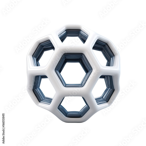 Fototapeta premium Abstract white, geometric 3D orb with layered hexagonal structure, isolated...