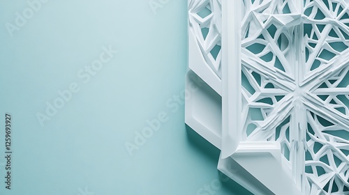© Kawula, Obraz premium Abstract White Geometric Pattern Design Against Teal Background
