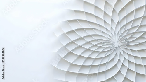 © Parsudi, Naklejka premium Abstract White Geometric Pattern with Spiral Structure and Shadowy Lines on Blank Background