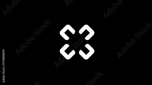 Obraz premium Abstract white geometric symbol on black background, modern minimalist icon representing target, connection, or full screen expansion