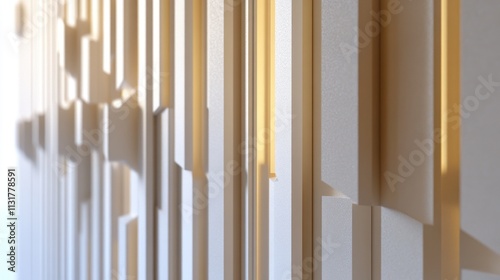 © mur, Obraz premium Abstract white geometric wall with light and shadow.