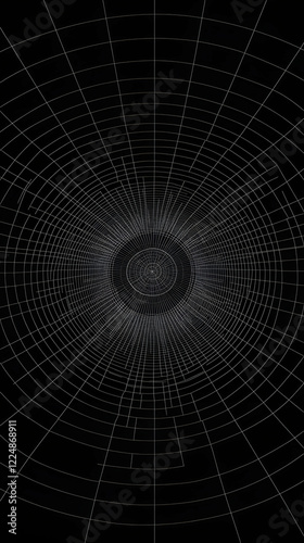 © Siasart Stock, Fototapeta premium Abstract white grid creates a mesmerizing tunnel effect on a black background.